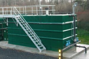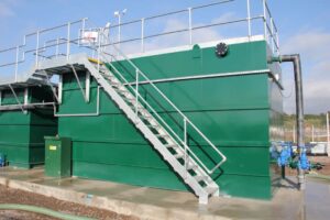 The balance chamber is used to control the forward flow of the effluent; it is sized to allow a certain amount of effluent to be stored in the chamber. Once this level is reached the effluent is pumped on to the next stage of the process, this allows the flow of effluent is regulated so that a specific retention time through the second stage can be achieved.